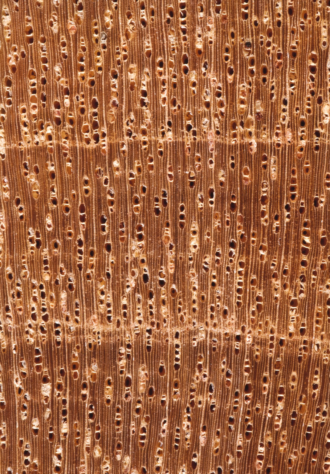 | Gesamtcharakter | Farblich einheitliches und auff ällig homogen strukturiertes Holz von mittlerer Textur; das schlichte wird Holzbild nur selten durch dunklere Farbstreifen aufgelockert. |